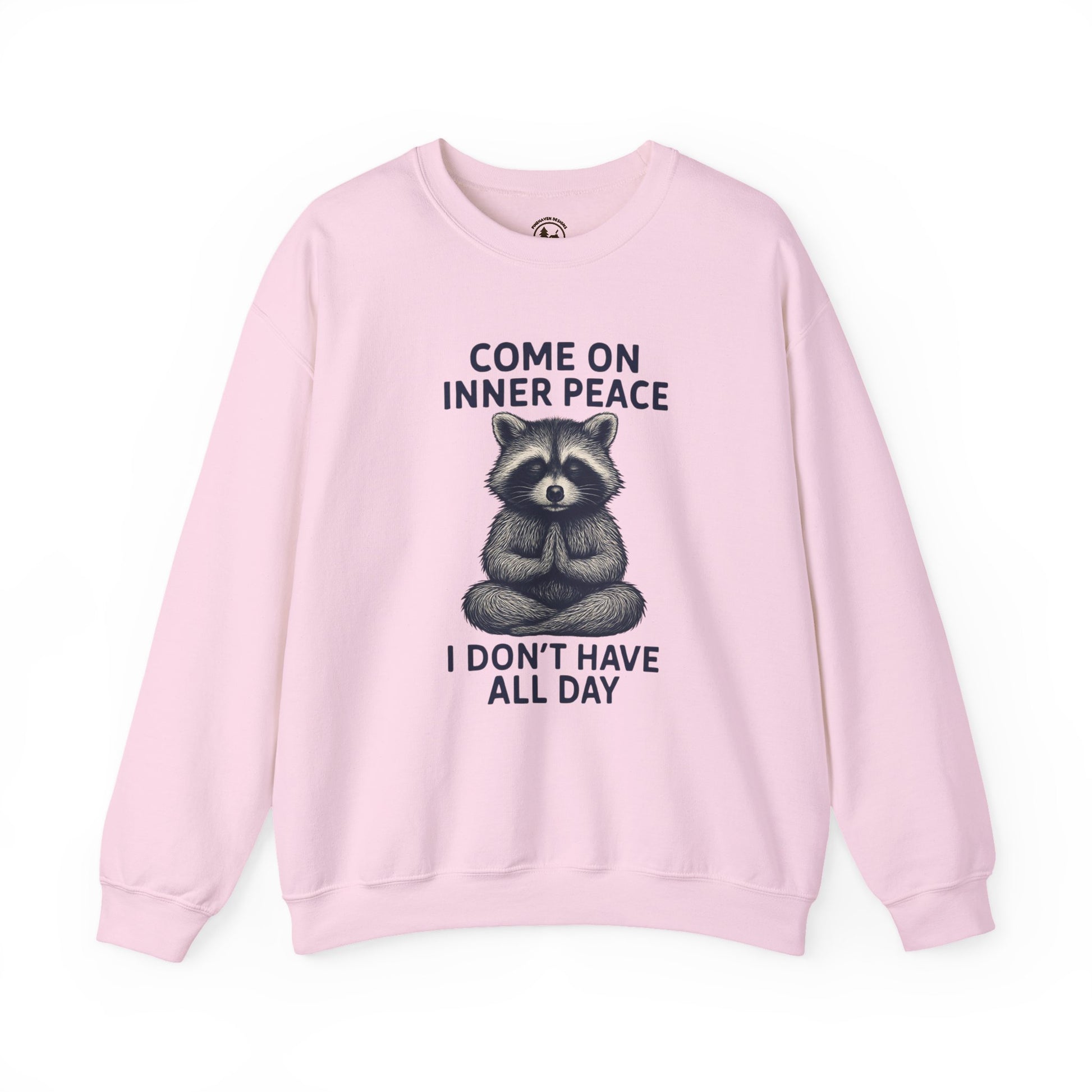 Find your balance in comfort and style with this “Come On Inner Peace, I Don’t Have All Day” crewneck sweatshirt. Featuring a meditating raccoon design, this cozy pullover is perfect for anyone who loves yoga, mindfulness, or just a good laugh.
